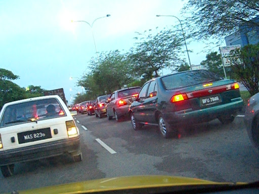 放工了之后5pm,准备要去上6:30pm的课。也想着今天要走新路,因为路比较平坦,车子也会比较省油些。一路上都在听着Jim Brickman - Beautiful, 到了Bandar Sunway 的槟威大桥准备要往学院方向去,突然间交通警察指示不可往Federal Highway方向去,叫我往Sunway Pyramid去。